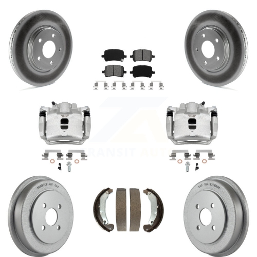 Front Rear Brake Caliper Coat Rotor Drum Semi-Metallic Pad Kit (8Pc) For Pontiac Pursuit KCG-100379S