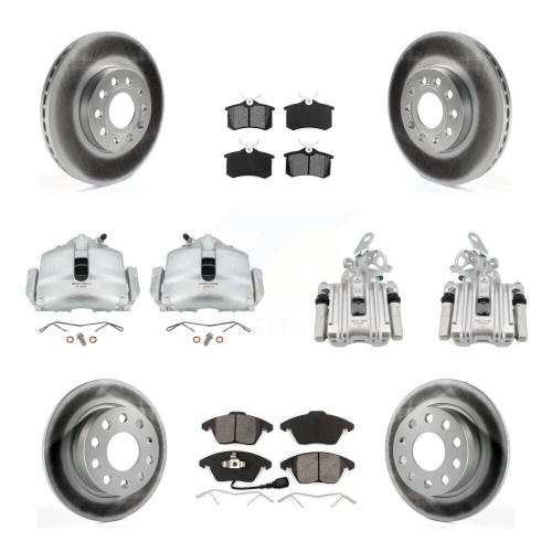 Front Rear Brake Caliper Coat Rotor & Semi-Metallic Pad Kit (10Pc) For Volkswagen Beetle KCG-100992S
