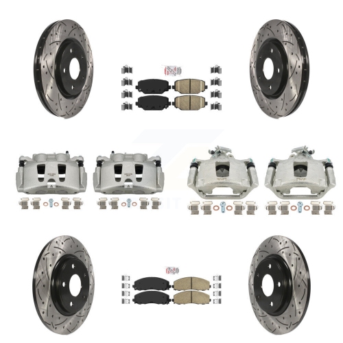 Front Rear Brake Caliper Drill Slot Rotor Ceramic Pad Kit (10Pc) For Dodge Grand Caravan KCD-101040N