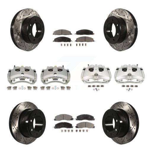 Front Rear Brake Caliper Drill Slot Rotor Ceramic Pad Kit (10Pc) For Ram 3500 2500 Dodge KCD-100668T