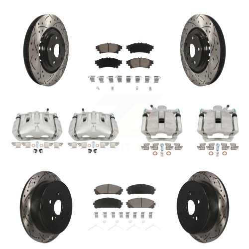 Front Rear Brake Caliper Drill Slot Rotor Ceramic Pad Kit (10Pc) For Toyota Sienna Lexus KCD-100238C