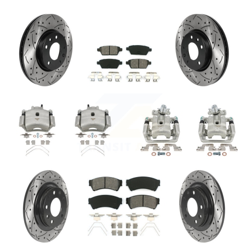 Front Rear Brake Caliper Drill Slot Rotor Semi-Metallic Pad Kit (10Pc) For Ford Fusion 6 KCD-100355S