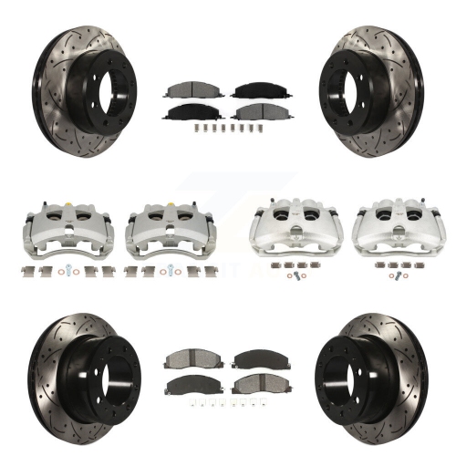 Front Rear Brake Caliper Drill Slot Rotor Semi-Metallic Pad Kit (10Pc) For Ram 3500 2500 KCD-100645S