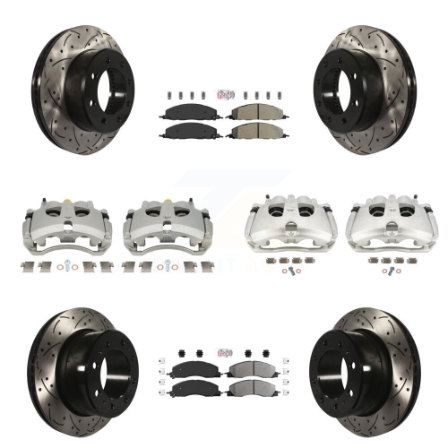 Front Rear Brake Caliper Drill Slot Rotor Semi-Metallic Pad Kit (10Pc) For Ram 3500 2500 KCD-101723N