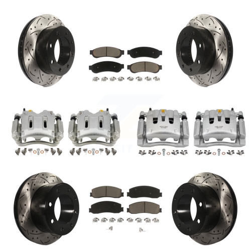 Front Rear Brake Caliper Drill Slotted Rotor Ceramic Pad Kit (10Pc) For Ford F-350 Super KCD-100305C