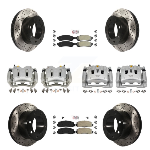 Front Rear Brake Caliper Drill Slotted Rotor Semi-Metallic Pad Kit (10Pc) For Ford F-250 KCD-101243N