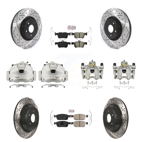 Front Rear Brake Caliper Drill Slotted Rotors Ameribrakes Pad Kit (10Pc) For Lincoln MKC KCD-101198N