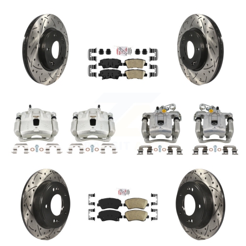 Front Rear Brake Caliper Drill Slotted Rotors Ceramic Pad Kit (10Pc) For Hyundai Elantra KCD-100708N