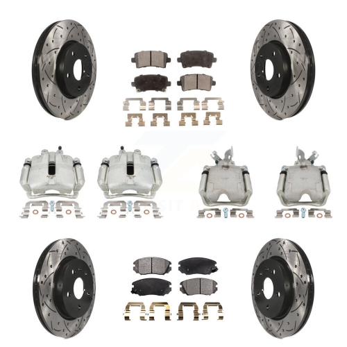 Front Rear Brake Caliper Drill Slotted Rotors Semi-Metallic Pad Kit (10Pc) For Chevrolet KCD-100234P