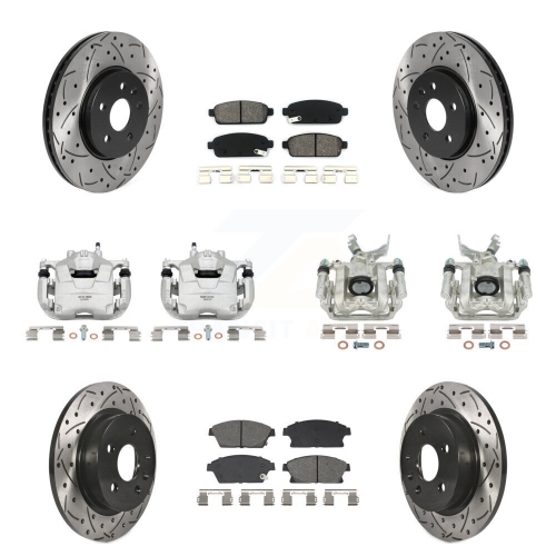 Front Rear Brake Caliper Drill Slotted Rotors Semi-Metallic Pad Kit (10Pc) For Chevrolet KCD-100667S