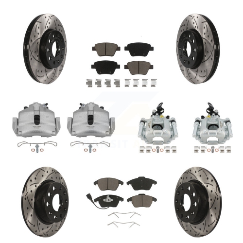 Front Rear Brake Caliper Drilled Slot Rotor Ceramic Pad Kit (10Pc) For Volkswagen Beetle KCD-100214C