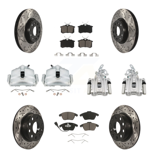 Front Rear Brake Caliper Drilled Slot Rotor Ceramic Pad Kit (10Pc) For Volkswagen Beetle KCD-100218C