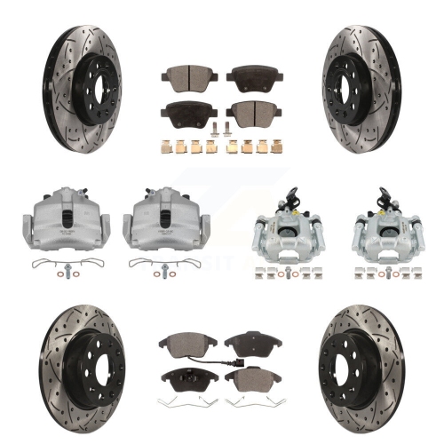 Front Rear Brake Caliper Drilled Slot Rotor Ceramic Pad Kit (10Pc) For Volkswagen Beetle KCD-100291T