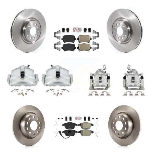 Front Rear Brake Caliper Rotors & Ameribrakes Pad Kit (10Pc) For 2012 Volkswagen CC 2.0L KC8-101872N
