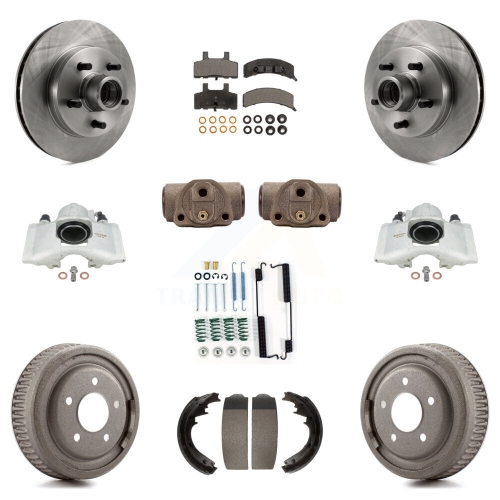 Front Rear Brake Caliper Rotors Drum Ceramic Pad Shoe Cylinder & Hardware Kit (11Pc) For KC8-100779T