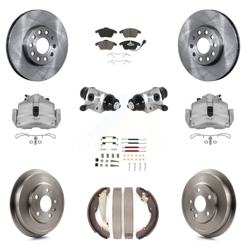 Front Rear Brake Caliper Rotors Drum Ceramic Pad Shoe Cylinder & Hardware Kit (11Pc) For KC8-100880C