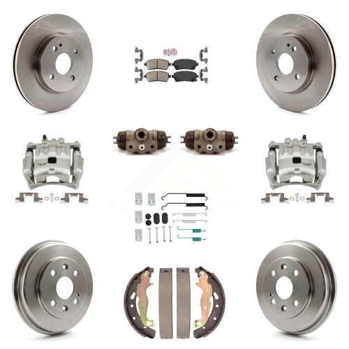 Front Rear Brake Caliper Rotors Drum Ceramic Pad Shoe Cylinder & Hardware Kit (11Pc) For KC8-103290N