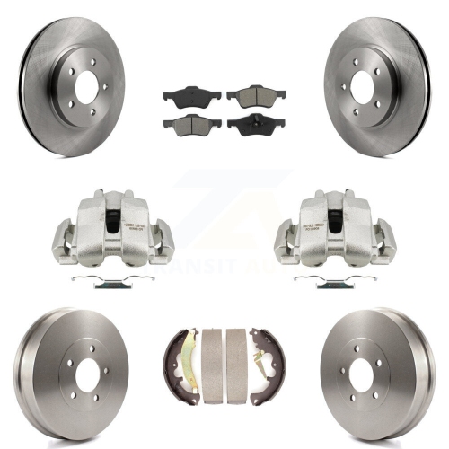 Front Rear Brake Caliper Rotors Drum Semi-Metallic Pad Kit (8Pc) For Ford Escape Mercury KC8-100778S
