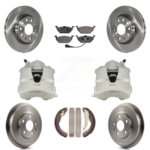 Front Rear Brake Caliper Rotors Drums Semi-Metallic Pads Kit (8Pc) For Volkswagen Jetta KC8-100839P