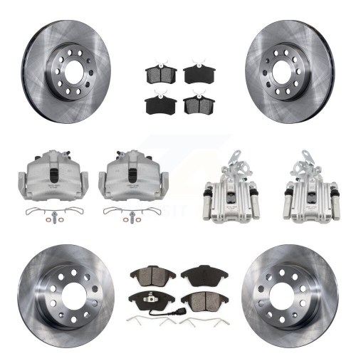 Front Rear Brake Caliper Rotors Semi-Metallic Pad Kit (10Pc) For Volkswagen Jetta Beetle KC8-100987S