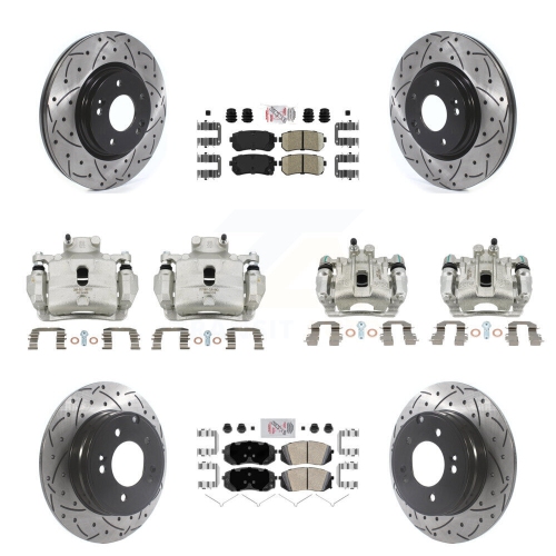 Front Rear Brake Coat Caliper Drill Slot Rotor Ceramic Pad Kit (10Pc) For Hyundai Sonata KCD-101033N