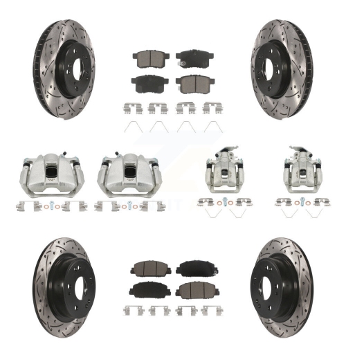 Front Rear Brake Coated Caliper Drill Slot Rotor Ceramic Pad Kit (10Pc) For Honda Accord KCD-100261C