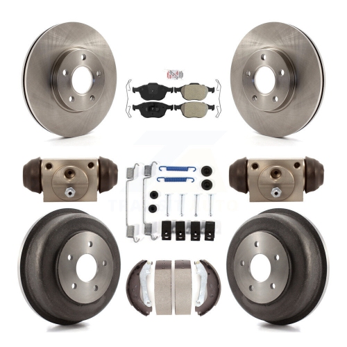 Front Rear Brake Rotors Semi-Metallic Pad & Drum Kit (9Pc) For 10-13 Ford Transit Connect K8A-105491