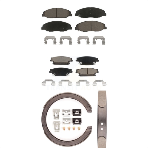 Front Rear Ceramic Brake Pads & Parking Shoe Kit For Cadillac STS With Performance Brakes KCN-100105