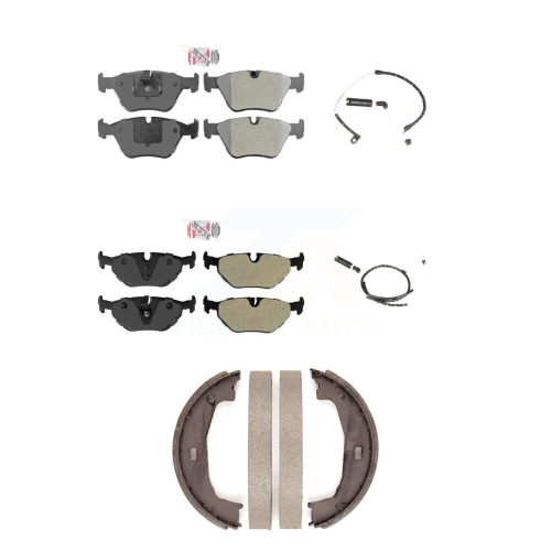 • 1x Front Semi-Metallic AmeriBRAKES Brake Pad Set + 1x Front Mpulse Brake Pad Wear Sensor + 1x Rear Semi-Metallic AmeriBRAKES Brake Pad Set + 1x Rear Mpulse Brake Pad Wear Sensor + 1x Rear Top Quality Parking Brake Shoe