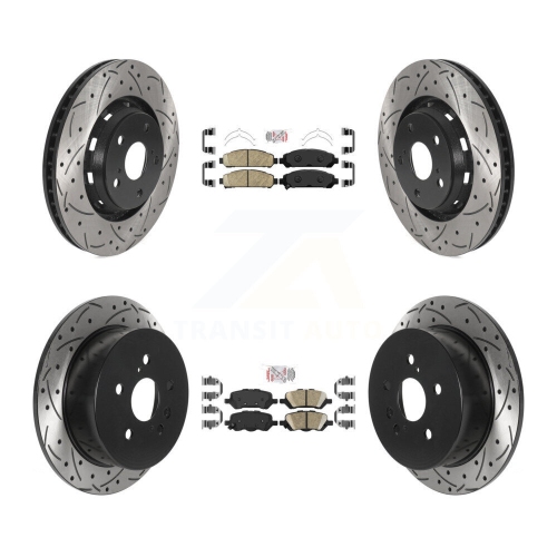 Front Rear Ceramic Pad Coated Drill Slot Disc Brake Rotors Kit For 2009-2016 Toyota Venza KDA-101763