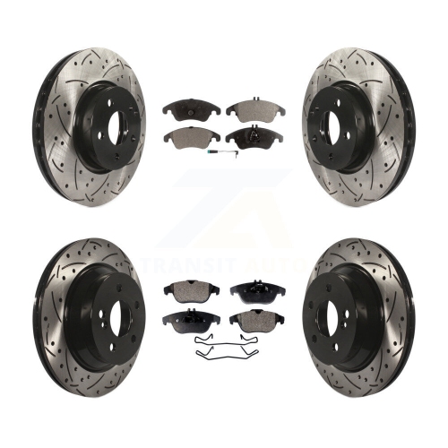 Front Rear Coat Drill Slot Disc Brake Rotors Semi-Metallic Pad Kit For Mercedes-Benz E350 KDF-100583