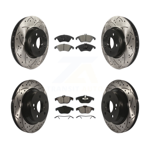 Front Rear Coat Drill Slot Disc Brake Rotors Semi-Metallic Pad Kit For Mercedes-Benz E350 KDS-100534