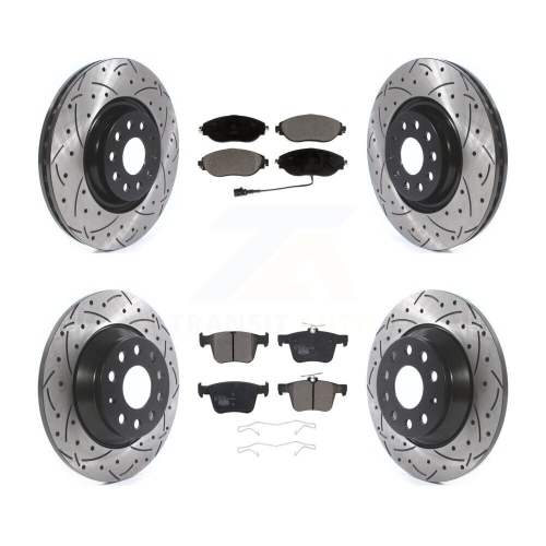 Front Rear Coated Drill Slot Disc Brake Rotor Ceramic Pad Kit For Volkswagen Tiguan Jetta KDT-100680