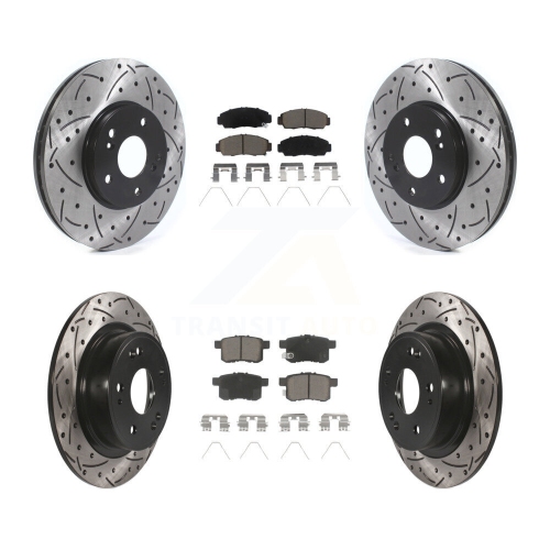 Front Rear Coated Drill Slot Disc Brake Rotors Ceramic Pad Kit For Honda Accord Acura TSX KDC-100944