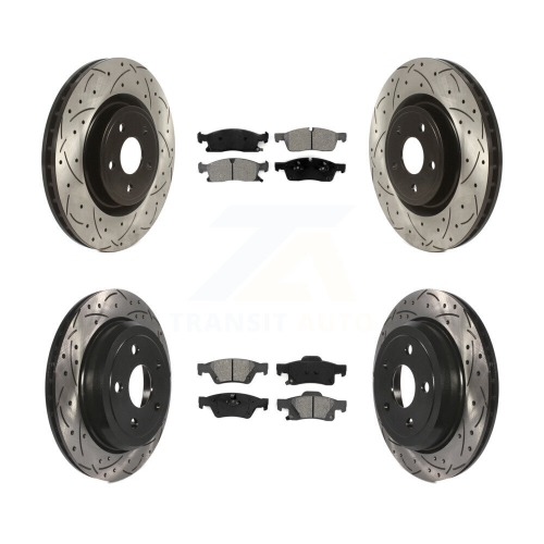 Front Rear Coated Drilled Slot Disc Brake Rotor & Semi-Metallic Pad Kit For Dodge Durango KDS-100940