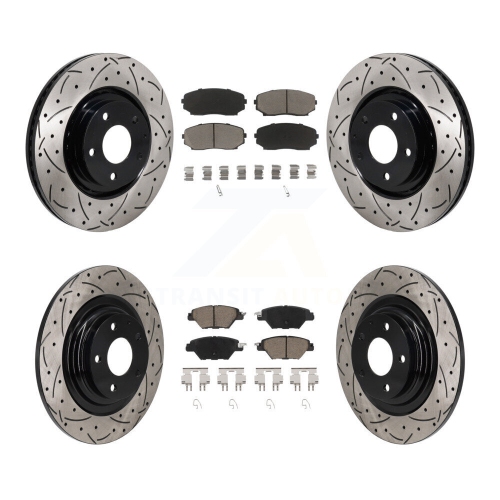 Front Rear Coated Drilled Slot Disc Brake Rotors Ceramic Pad Kit For 2016-2023 Mazda CX-9 KDC-101225