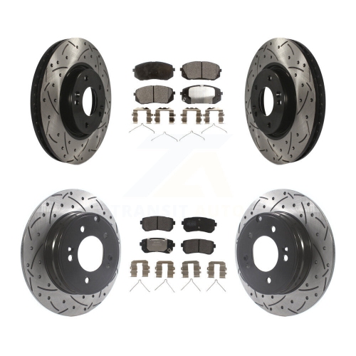Front Rear Coated Drilled Slot Disc Brake Rotors Semi-Metallic Pad Kit For Hyundai Sonata KDF-101130