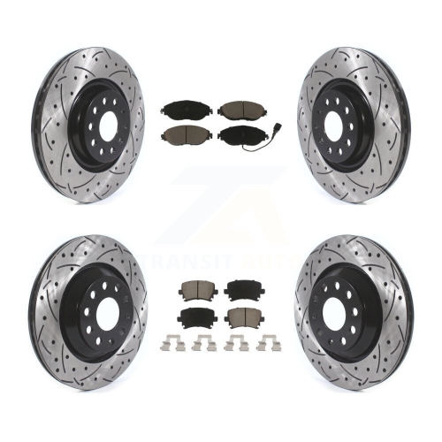 Front Rear Coated Drilled Slotted Disc Brake Rotor And Ceramic Pad Kit For Volkswagen GTI KDC-100490