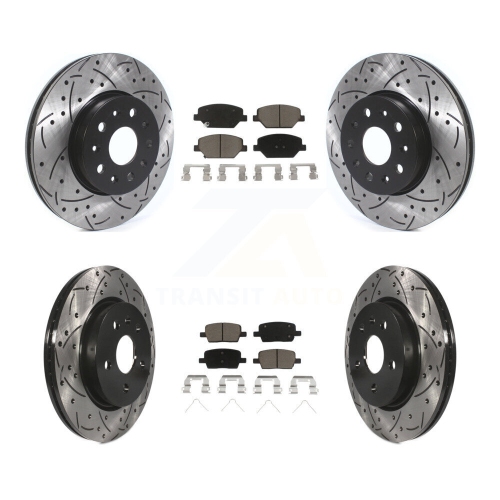 Front Rear Coated Drilled Slotted Disc Brake Rotor & Ceramic Pad Kit For Chevrolet Camaro KDC-100432
