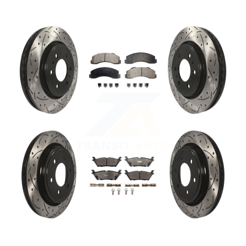 Front Rear Coated Drilled Slotted Disc Brake Rotors And Ceramic Pads Kit For Ford F-150 KDT-100624