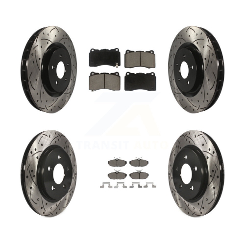 Front Rear Coated Drilled Slotted Disc Brake Rotors And Ceramic Pads Kit For Ford Mustang KDC-100362
