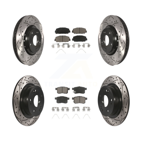 Front Rear Coated Drilled Slotted Disc Brake Rotors And Ceramic Pads Kit For Honda Accord KDC-100598