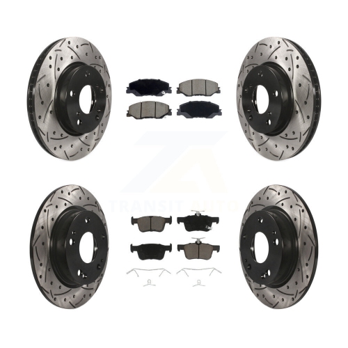 Front Rear Coated Drilled Slotted Disc Brake Rotors And Ceramic Pads Kit For Honda Civic KDC-101289