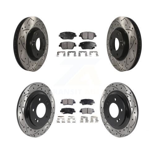 Front Rear Coated Drilled Slotted Disc Brake Rotors And Ceramic Pads Kit For Kia Optima KDT-100845