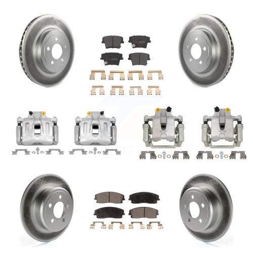 Front Rear Disc Brake Caliper Coat Rotors Semi-Metallic Pad Kit (10Pc) For Dodge Charger KCG-100797P