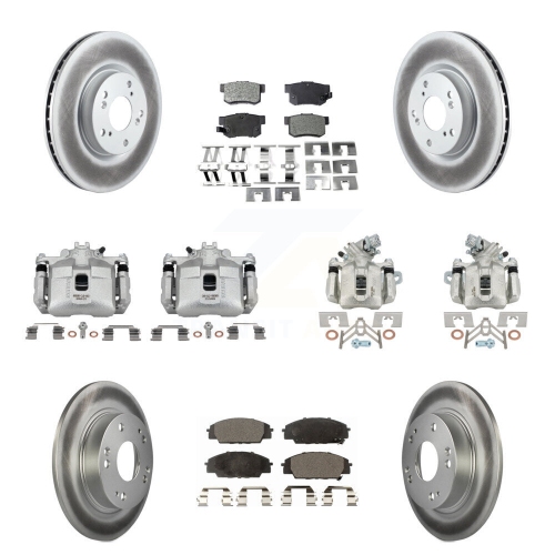 Front Rear Disc Brake Caliper Coat Rotors & Semi-Metallic Pad Kit (10Pc) For Honda Civic KCG-100836P