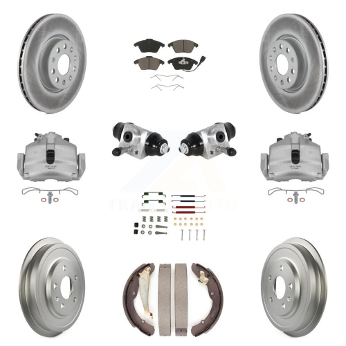 Front Rear Disc Brake Caliper Coated Rotor Drum Ceramic Pad Shoe Cylinder Kit (11Pc) For KCG-100350C
