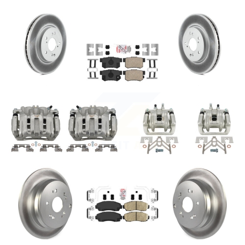 Front Rear Disc Brake Caliper Coated Rotors And Ceramic Pads Kit (10Pc) For Acura RDX KCG-101957N