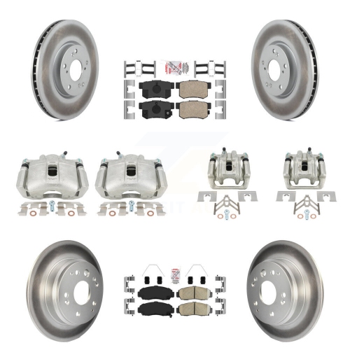 Front Rear Disc Brake Caliper Coated Rotors And Ceramic Pads Kit (10Pc) For Acura TL KCG-101658N