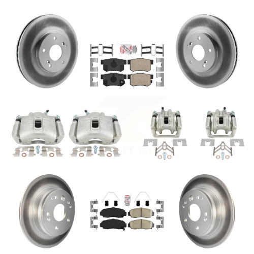 Front Rear Disc Brake Caliper Coated Rotors And Ceramic Pads Kit (10Pc) For Acura TL KCG-101666N